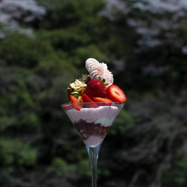 今年も桜のパフェの季節になりました。桜の花と葉、そして桜あんを使い、甘さの中にほんの少しの塩気を忍ばせました。 満開の桜のように、春らしく可…