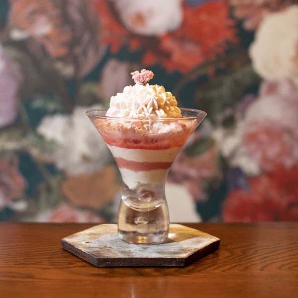 ご好評頂いております〈ブロンドチョコレートのパフェ〉は6月6日(木)で終了し、6月7日(金)からは〈チェリーとチョコレートのパフェ〉がはじまります。カクテルをイメージした大人のパフェ。エロティックなカラーがキーになっています。チェリーやチョコレートを様々なカタチで表現し、ヨーグルトとラベンダーのソルベ、アセロラやグレープフルーツルビーのジュレなどで広がりのある味に展開しています。酸味や苦味、多彩な食感を最後まで楽しんでいただけるパフェです。