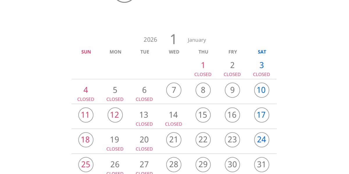 2026年1月の営業スケジュールをお知らせします。