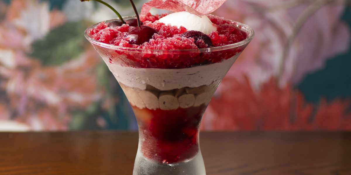 ご好評頂いております〈ブロンドチョコレートのパフェ〉は6月6日(木)で終了し、6月7日(金)からは〈チェリーとチョコレートのパフェ〉がはじまります。カクテルをイメージした大人のパフェ。エロティックなカラーがキーになっています。チェリーやチョコレートを様々なカタチで表現し、ヨーグルトとラベンダーのソルベ、アセロラやグレープフルーツルビーのジュレなどで広がりのある味に展開しています。酸味や苦味、多彩な食感を最後まで楽しんでいただけるパフェです。