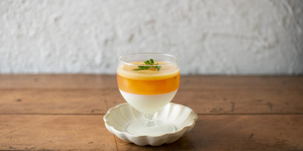 カフェひとあしは、月替りのパフェが2種類とスープランチというシンプルなメニュー構成です。ただ、時々、パティシエの気まぐれメニューが登場します。只今の季節ご提供しているのは〈桃のゼリー〉です。ローストしたアーモンドで香りを付けたブランマンジェ。桃のコンポートとそのシロップのジュレ。トップにはフレッシュの桃ソースにアーモンドスライスを飾ります。するするっと食べやすい硬さ。甘さもほどよく仕上げました。当店マネージャーイチオシです。〈桃とバジルのパフェ〉と同じ期間にのみご提供いたします。