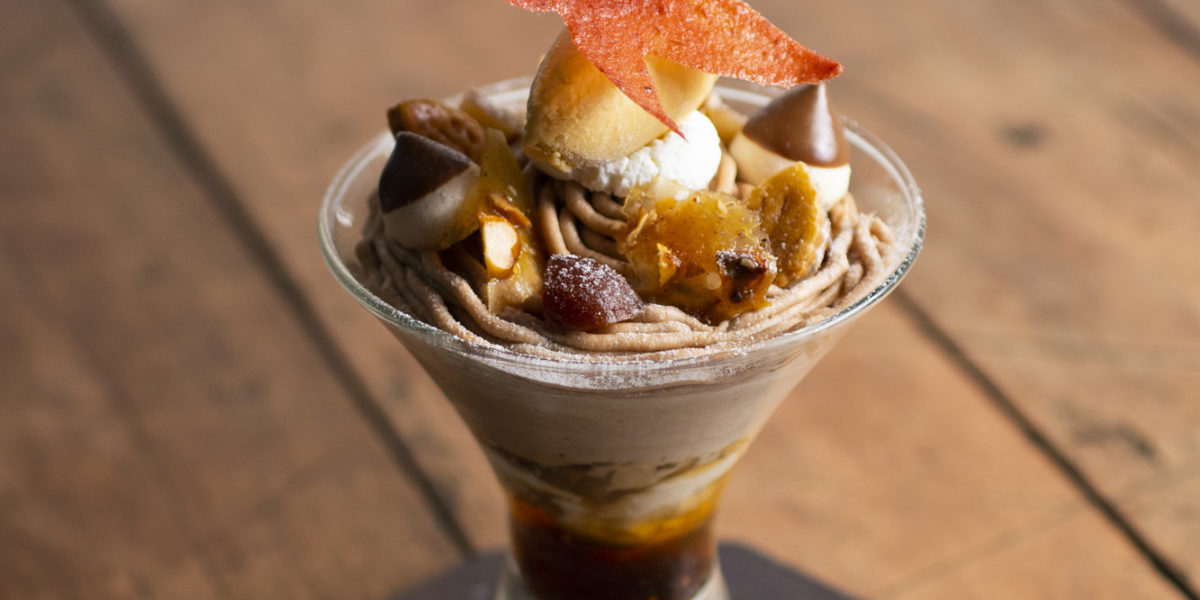 今年の〈栗とナッツのパフェ〉は新しいデザインで登場です。贅沢な素材を濃厚な甘さに仕上げた秋のパフェ。 ほろ苦い焦がし醤油のキャラメルアイスとマロンの風味は相性抜群です。甘さ、食感、風味すべてのバランスが絶妙な大人のためのパフェをお楽しみください。(2020年12月2日までのご提供)