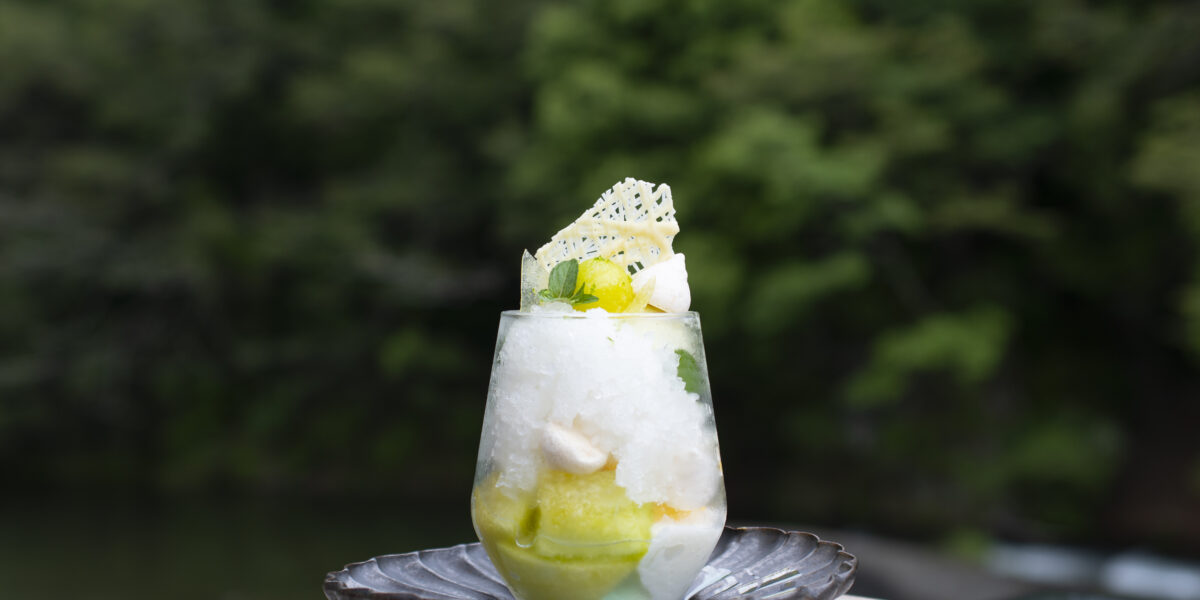 至高のシャインマスカットをメインにレモンやジンジャーなど爽やかな素材を使いました。ジンジャーエールのアイスはスパイスの効いた逸品。…