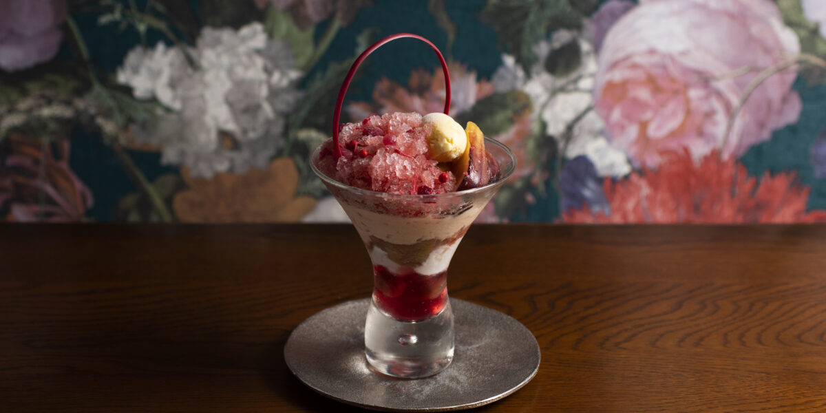 葡萄をメインにしたボルドーカラーのパフェ。酸味と濃厚な甘さのバランスがとても良く、香り高い秋の贅沢な逸品に仕上がりました。2年ぶりの登場で…