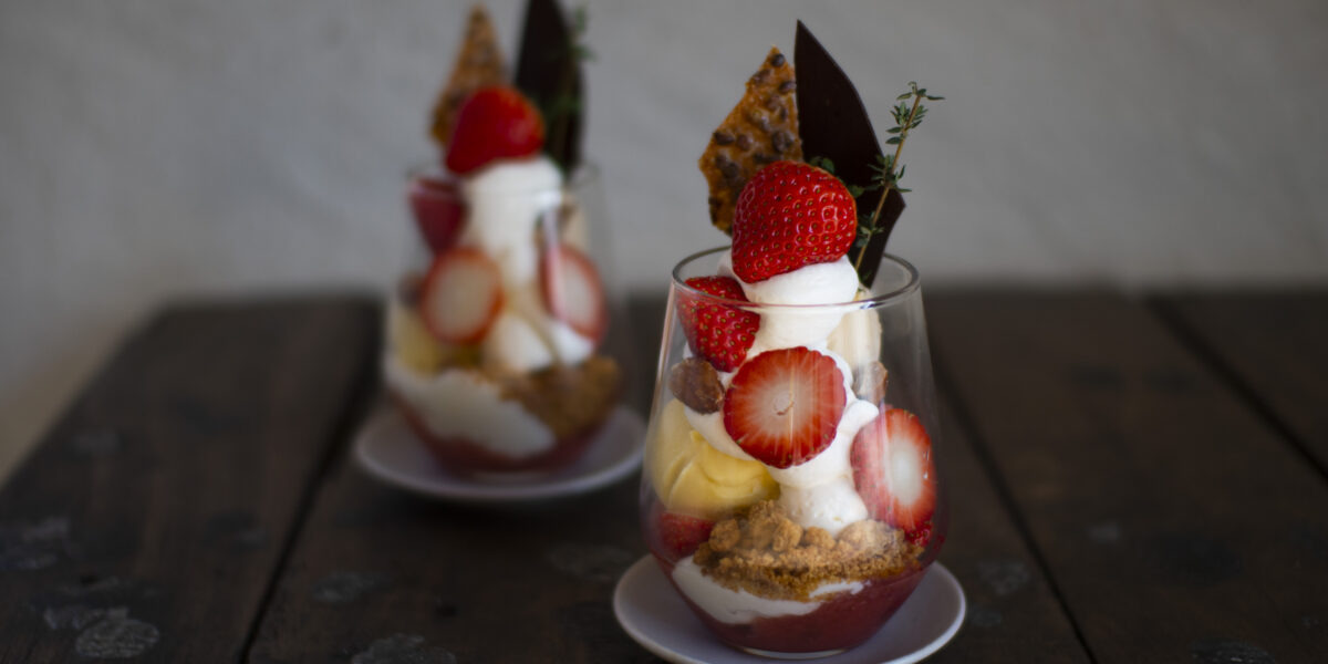 苺のアイス、シャーベット、ハーブで香りを付けたアイスなど様々な味わいにアレンジしています。