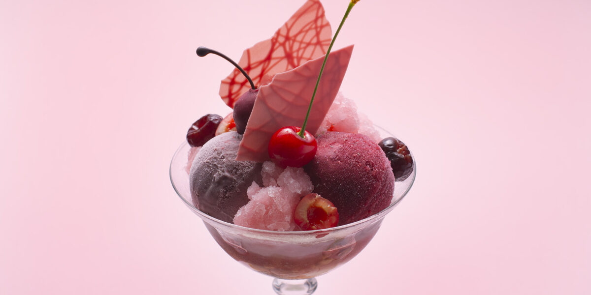 フランボワーズやブラックベリーを混ぜたアイスやアメリカンチェリーのソルベ。