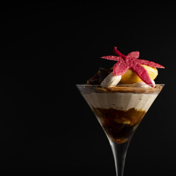 小さなアップルパイから始まるパフェ。りんごを6種類のパーツにアレンジしました。酸味やスパイスのアクセントが絶妙です。…
