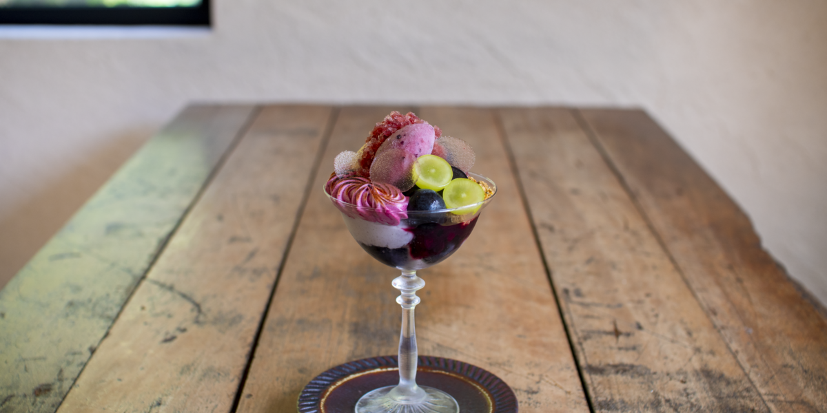 葡萄をメインにしたボルドーカラーのパフェ。酸味と濃厚な甘さのバランスがとても良く、香り高い秋の贅沢な逸品に仕上がりました。…