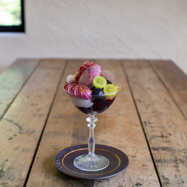今いちばん美味しいぶどうを選りすぐり、酒粕を使ったアイスや洋梨のムースなどと合わせました。酸味と甘さのパランスが絶妙な初秋のパフェで…