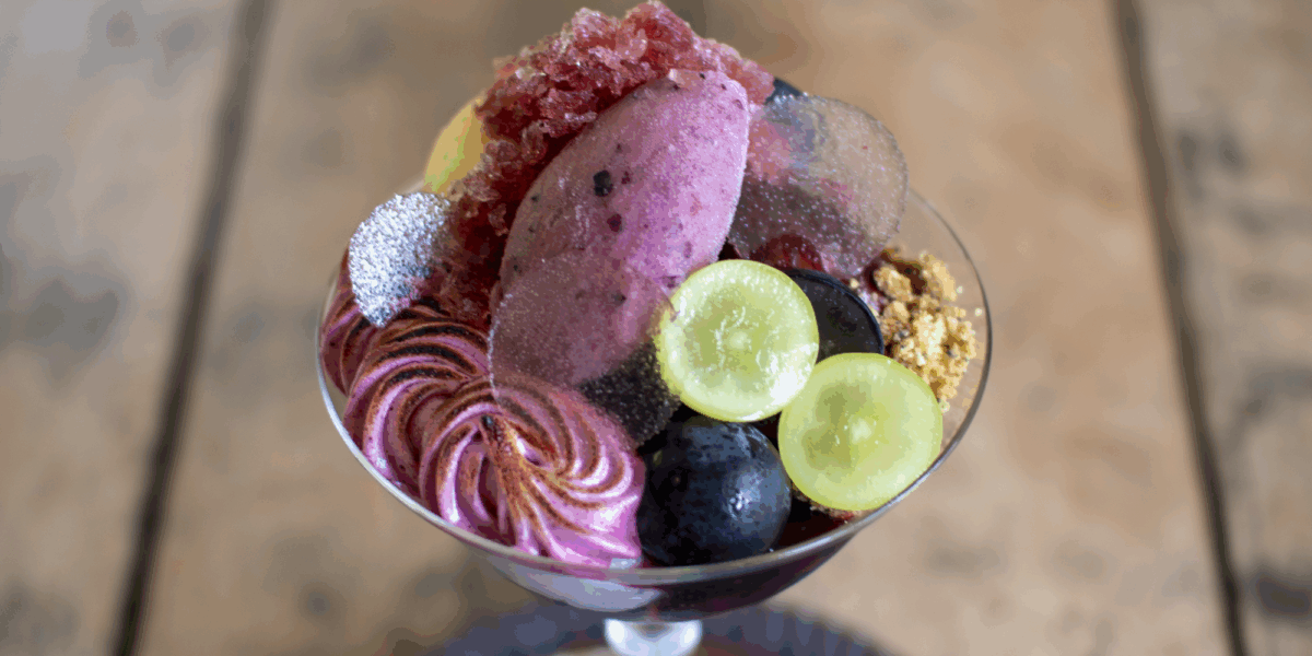 葡萄をメインにしたボルドーカラーのパフェ。